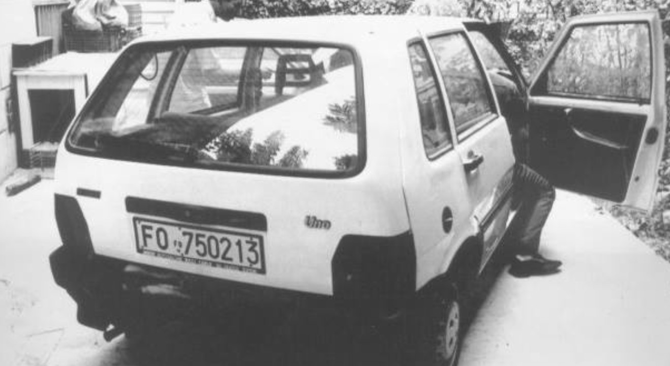 E proprio la Uno targata FO750213, dopo essere stata rubata tra il 17 e 18 agosto 1991 a un 46enne di Rimini, fu tra le auto usate per seminare morte e dolore in cinque province tra Emilia Romagna e Marche, tra cui proprio Forlì, provincia di provenienza dell’auto che a differenza delle altre, forse per un eccesso di sicurezza o mitomania da parte della banda, riesce ad evitare il destino di essere data alle fiamme e distrutta dai criminali dopo avere messo a segno uno dei tanti colpi, quello più eclatante, l’uccisione di due senegalesi per motivi razziali.