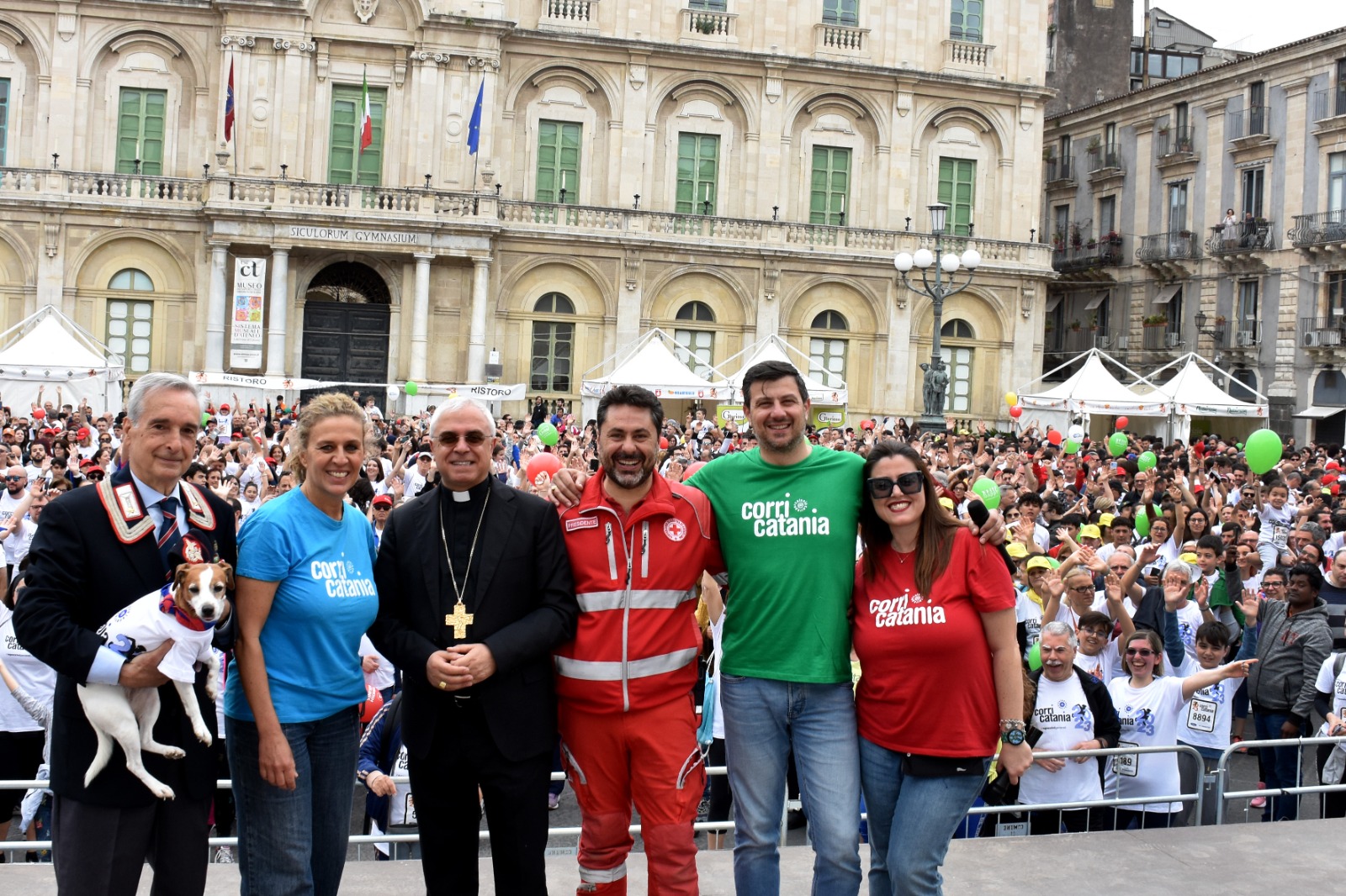 Prima dello start, dato da Danilo Pasqualino e da Federica Scuderi, entusiaste “voci” di Corri Catania, è salito sul palco Monsignor Luigi Renna, Arcivescovo di Catania, per portare il suo saluto ai partecipanti: <Corri Catania ci insegna che per raggiungere i risultati non ci si può improvvisare ma bisogna avere un metodo da seguire con attenzione, impegno ed entusiasmo. Raccogliere a sè così tante persone è il segno tangibile che questo evento ha fatto centro. Un plauso agli organizzatori per quello che fanno da 15 anni per la città>.
