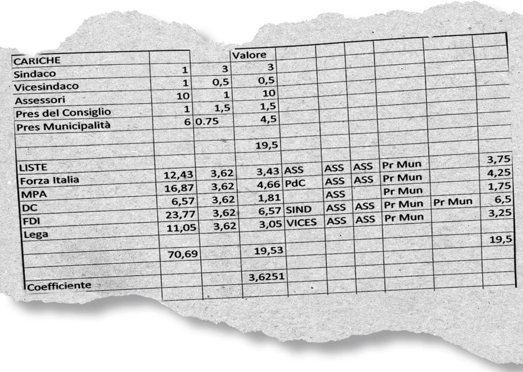 La spartizione dei posti di potere, nel centrodestra, è una cosa seria. Di più: scientifica. Quando in campagna elettorale abbiamo parlato di “Cencelli alla Norma” - rivelando che la coalizione di Enrico Trantino aveva stabilito un punteggio per ogni casella nella futura giunta comunale - non immaginavamo che dietro ci fosse un tale rigore metodologico.