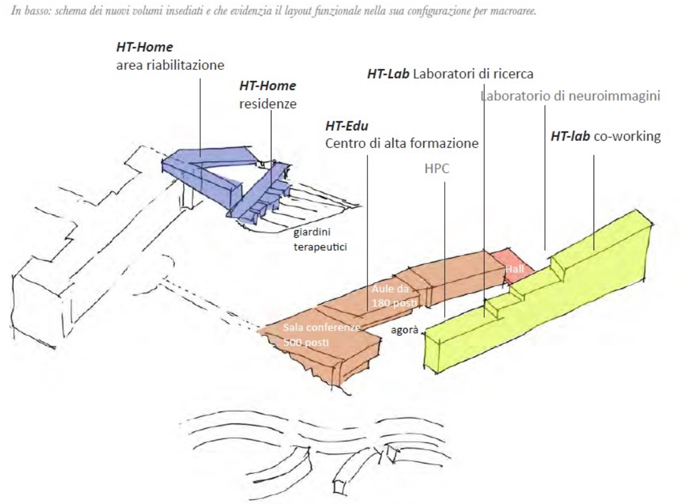 Nella fattispecie la struttura dell'Ascoli verrà demolita per costruire l'Httc (investimento previsto 65,101 milioni di euro del Pnrr per Biotecnologie, Tecnologie per la salute, Intelligenza artificiale, High performance computing e big data, Robotica). Troveranno spazio didattica e ricerca universitaria con laboratori di alta tecnologia su 19 mila mq e una struttura riabilitativa d'avanguardia per pazienti fragili affetti da patologie neurodegenerative su un'area di 1.000 mq.