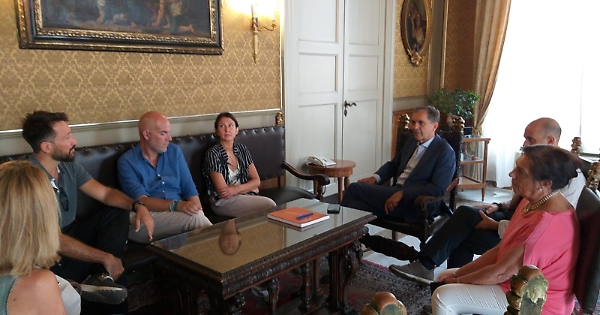 E' stato il primo cittadino Enrico Trantino a ricevere la delegazione Palomar, composta da Giacomo Barbieri, organizzatore generale, Alessandra Li Mandri, direttrice di produzione, Saverio Nicastro, location manager. Presenti anche il capo di Gabinetto Giuseppe Ferraro, che ha coordinato gli interventi a favore della produzione, Sabina Murabito responsabile della Catania Film Commission, che ha assistito le diverse fasi delle riprese, Carmela Costa dello staff del Gabinetto, conoscitrice di storie e luoghi della città adatti anche a racconti cinematografici.