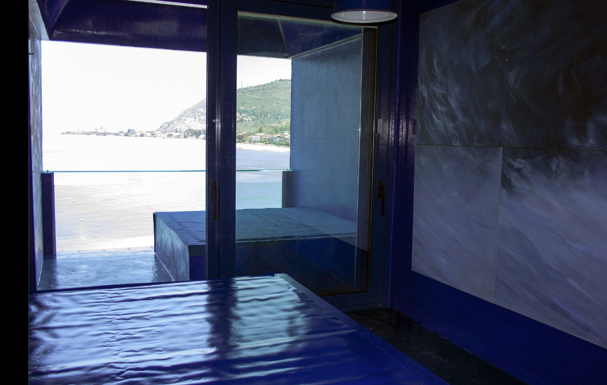 Andiamo in riva al mare. Davanti a quel blu alla quale è dedicata la finestra di Tano Festa in memoria di Pasolini. Sorrido, gli dico: a proposito di norma, te lo ricordi mio papà? Quando perse mia mamma voleva sempre venire qui. Si mangiava la norma della signora Maria. Norme e genitori scomparsi. Gemme racchiuse nelle menti. Perché l’Atelier sul Mare non è solo un albergo, non è solo un museo, non è fatto soltanto dalle stanze d’arte, dalle opere monumentali, dalle mille attività che qui nascono, è fatto anche di ricordi. Ricordi di centinaia di migliaia di persone che qui si trasformano, anche quelli, in opere d’arte. Assumendo significati che oltrepassano. Amori, concepimenti, idee, illuminazioni, scoperte, riscoperte, abbandoni e riconciliazioni, emozioni, visioni, sogni, che passano sopra gli occhi di chi ci è stato, opere individuali accanto alle opere collettive, minuti paradisi da custodire e cullare privatamente. Lo sguardo si posa sopra l’orizzonte. Di una cosa siamo convinti, io e Antonio: il nostro passato è e sarà anche il nostro futuro.
