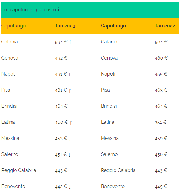 Sono 54 i capoluoghi in cui si registrano aumenti della tariffa, soltanto 20 quelli in diminuzione: l’incremento più elevato è a Latina (+31,2%), la riduzione più consistente ad Imperia (-23,3%).