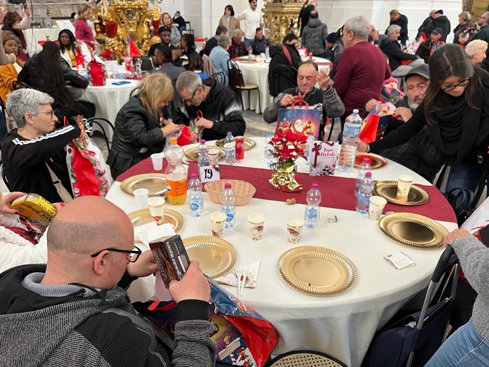 Proprio il 25 dicembre la chiesa di San Nicola è diventata il luogo della festa con tavole imbandite e musica natalizia. Diverse autorità sono venute a servire o ad augurare buon Natale come il sindaco Enrico Trantino o il Presidente dell' Ars Gaetano Galvagno. Ad un tavolo c'era seduto il Vescovo Mons. Luigi Renna e, come di consueto, l'imam di Catania Kheit Abdelhafid accompagnato dalla famiglia.