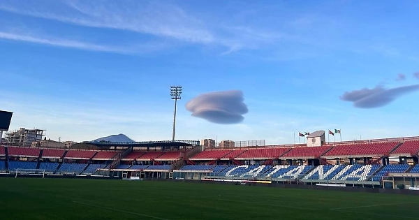 Catanesi con gli occhi rivolti al cielo per ammirare la "contessa" (o contesa dei venti): la meravigliosa nube lenticolare è apparsa oggi nel cielo azzurro di Catania. E' uno tra i più affascinanti e rari fenomeni atmosferici che si formano quando soffiano venti umidi occidentali. Nella foto tratta da Facebook la nuvola immortalata sopra lo Stadio Angelo Massimino.