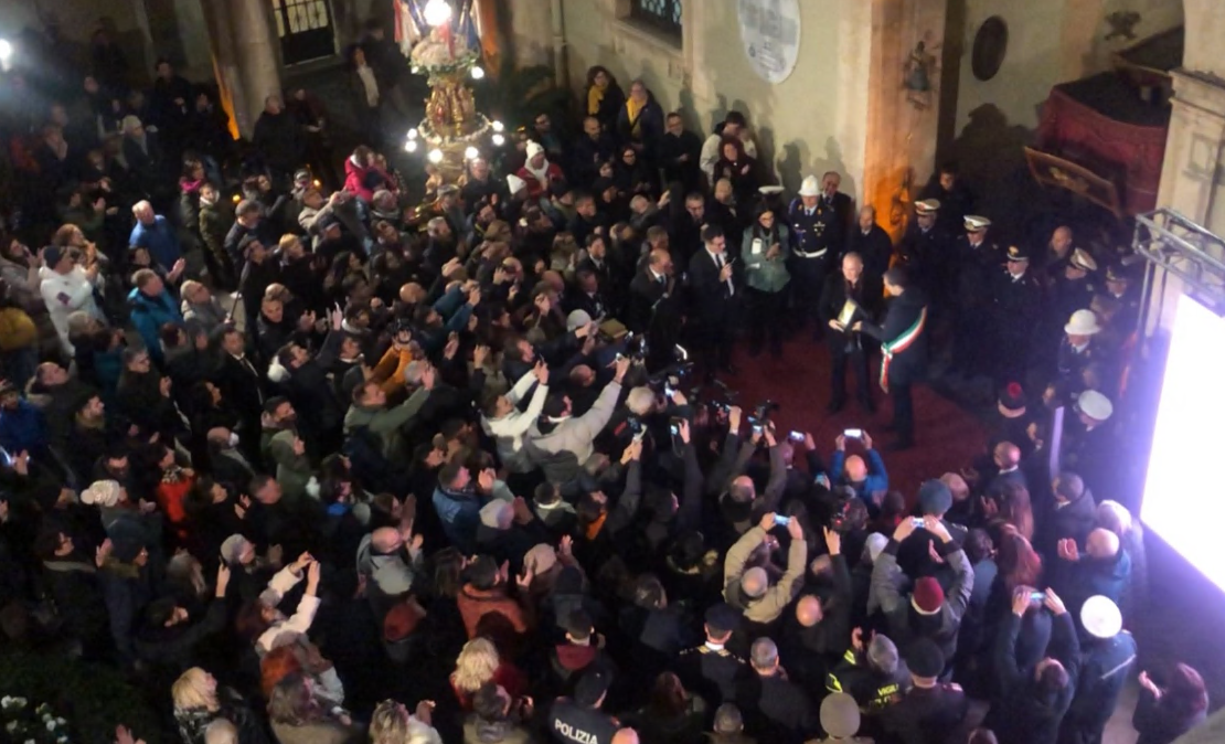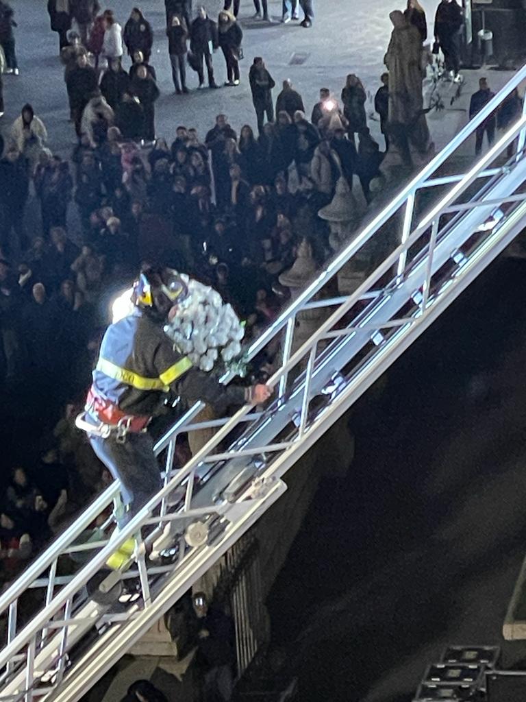 Sempre stasera poi un altro dei momenti tradizionali del 2 febbraio: l'omaggio dei Vigili del Fuoco alla Santa con un mazzo di fiori deposto, tramite un'autoscala, nella parte alta della facciata della Cattedrale.