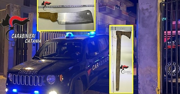 La notte scorsa a Mirabella Imbaccari (Catania) un 29enne e un 42enne si sono affrontati per futili motivi in piazza Vespri, armati di una lunga ascia e di una mannaia. Il primo è stato arrestato e posto ai domiciliari. Il secondo è finito in ospedale con una prognosi di 30 giorni.