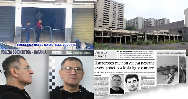 Il capostipite di questa eredità mafiosa è quel Giovanni Arena, l’uomo che fu arrestato nel 2011 dopo 18 anni di latitanza. Nel 1993 sfuggì all’operazione Orsa Maggiore, la bibbia delle indagini sulla mafia catanese. Fu condannato nel 2003 per un omicidio in uno dei capitoli del processo Orione. La squadra mobile, all’epoca diretta da Giovanni Signer, trovò Arena in un nascondiglio ricavato in un letto a ponte nella sua casa, a Librino.