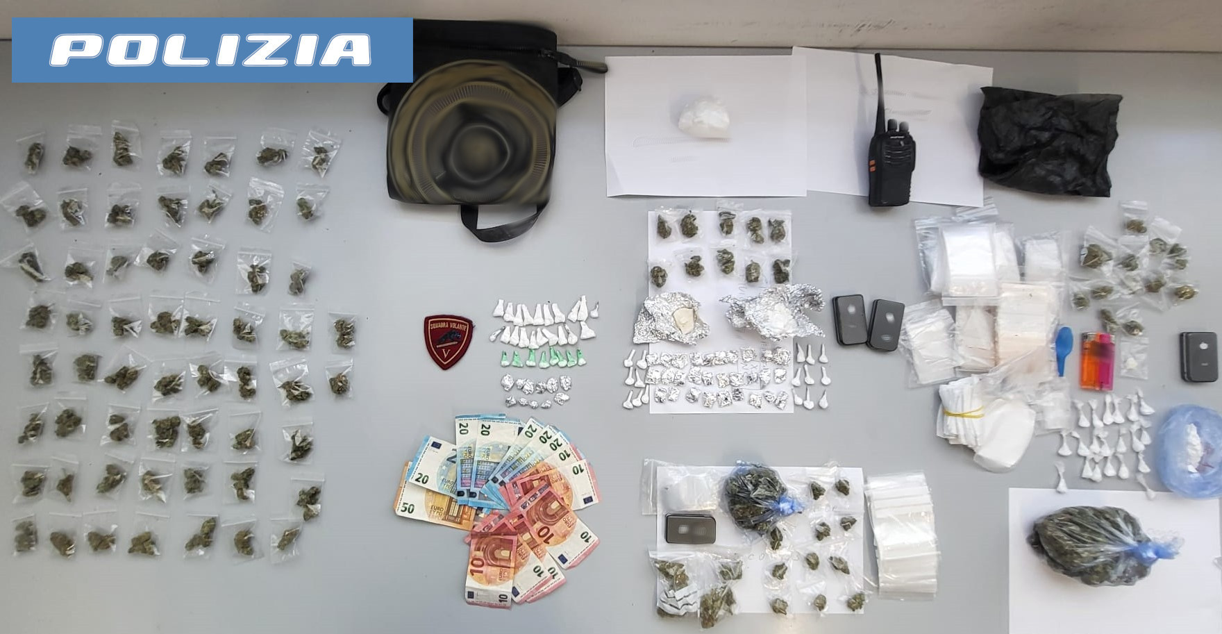 Dopo averlo identificato i poliziotti hanno proceduto con una perquisizione che ha dato esito positivo. Dentro un marsupio c'erano infatti 58 involucri in cellophane contenenti sostanza stupefacente del tipo marijuana, per un peso totale lordo di 75,4 grammi, 11 involucri in carta stagnola contenenti sostanza stupefacente del tipo crack, per un peso totale lordo di 2,75 grammi, 28 involucri in cellophane termosaldati, contenenti sostanza stupefacente del tipo cocaina, per un peso totale lordo 12 grammi, la somma di euro 230 euro in contanti e un bilancino di precisione. Tutto quanto rinvenuto è stato sottoposto a sequestro.