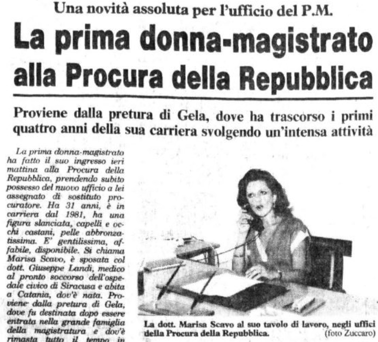 La magistrata ha mostrato l’articolo de La Sicilia che racconta il suo ingresso nella procura etnea il 15 luglio 1985. «Avevo 30 chili in meno», commenta con la sua inconfondibile autoironia. Il distacco del cordone ombelicale (durato 39 anni) Marisa Scavo l’ha voluto fare in modo lento. Anche se il suo è solo un arrivederci: «Da domani comincerò a molestarvi e stalkerizzarvi…».