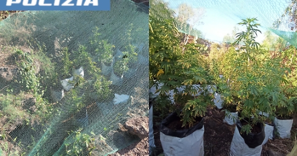 E così era la piantagione - in tutto una cinquantina di piante - curata dai due giovani arrestati: era stata creata in un’area difficilmente accessibile. Le piante, curate e discretamente alte, erano nascoste dai dislivelli del terreno, formazioni rocciose, rovi e muri a secco.