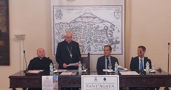 All’Arcivescovado di Catania, stamani è stato presentato l’898esimo anniversario della traslazione delle Reliquie di Sant'Agata ovvero della Festa di Sant'Agata in estate 2024. Presenti l'Arcivescovo di Catania S.E. Mons. Luigi Renna, il Sindaco di Catania Avv. Enrico Trantino, il Parroco della Basilica Cattedrale Mons. Barbaro Scionti ed il Presidente del Comitato per la Festa di Sant'Agata Carmelo Grasso.