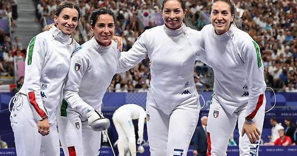 L'Italia della spada femminile ha vinto la medaglia d'oro nel torneo a squadre nei Giochi Olimpici di Parigi 2024. Le azzurre Alberta Santuccio, Giulia Rizzi, Rossella Fiamingo, Mara Navarria hanno battuto la Francia 30-29 grazie all'ultima stoccata della stessa Santuccio. Giornata trionfale per le ragazze del ct Dario Chiadó: ai quarti battute le egiziane (39-26), in semifinale é arrivata la larga vittoria contro la Cina (45-24). La medaglia di bronzo é stata vinta invece dalla Polonia che ha battuto la Cina 32-31. Seconda medaglia consecutiva per la spada femminile a squadre, bissato il bronzo ottenuto alle Olimpiadi di Tokyo mentre per la scherma é la terza medaglia dopo l'argento di Filippo Macchi nel fioretto e il bronzo di Luigi Samele nella sciabola.