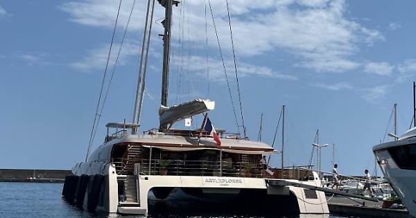 Art Explorer, il catamarano a vela più grande del mondo, con una lunghezza di 47 metri, l’eccezionale larghezza di 17,30 metri e un imponente piano velico totalmente in carbonio con albero di 55 metri, ha fatto tappa a Marina di Riposto, ormeggiando per due giorni all’interno del porto turistico internazionale dell’Etna.