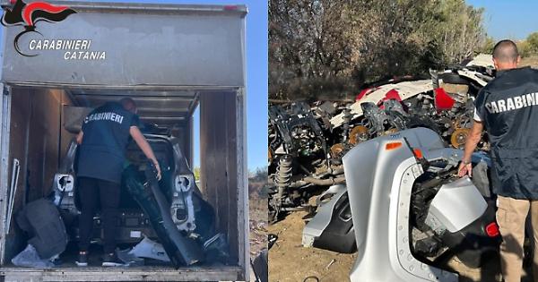 Il sospetto che l'uomo potesse usare terreno di campagna in contrada Malvezzaro a Paternò per i suoi traffici illeciti è stato poi confermato da una serie di appostamenti. Durante uno di questi i militari dell’Arma hanno visto il proprietario del camion e del terreno che, insieme ad un complice, stava caricando la carcassa di una Jeep Renegade sul furgone.