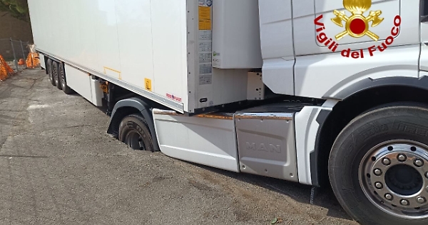 La squadra dei Vigili del Fuoco del Distaccamento di Caltagirone è intervenuta a Largo Cappuccini a Vizzini per soccorrere un mezzo pesante sprofondato in parte in una voragine che si è aperta sulla sede stradale. La voragine sembrerebbe profonda una decina di metri e il mezzo si trova in una situazione di instabilità poiché ha le ruote motrici sprofondate, in parte, al di sotto del piano stradale.