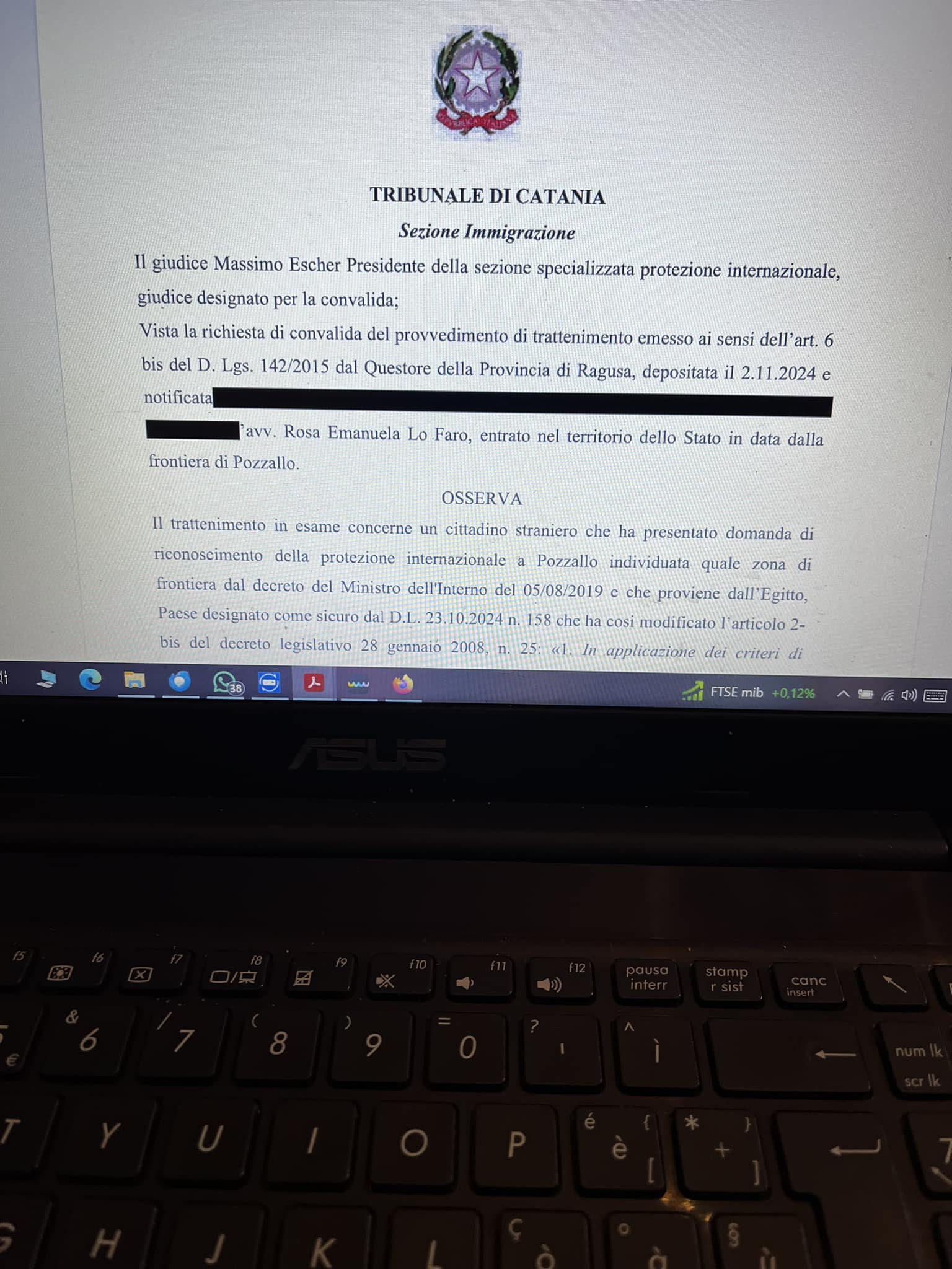 «Il presidente Escher - osserva l’avvocata Lo Faro - spiega che il decreto non va applicato perché l’Egitto non è un paese sicuro per svariati motivi derivanti dalle schede per la determinazione del ministero degli Esteri, e, ancora una volta, afferma che in Italia il diritto di asilo è previsto dall’articolo 10 della Costituzione e nessuna legge ordinaria lo può scalfire».