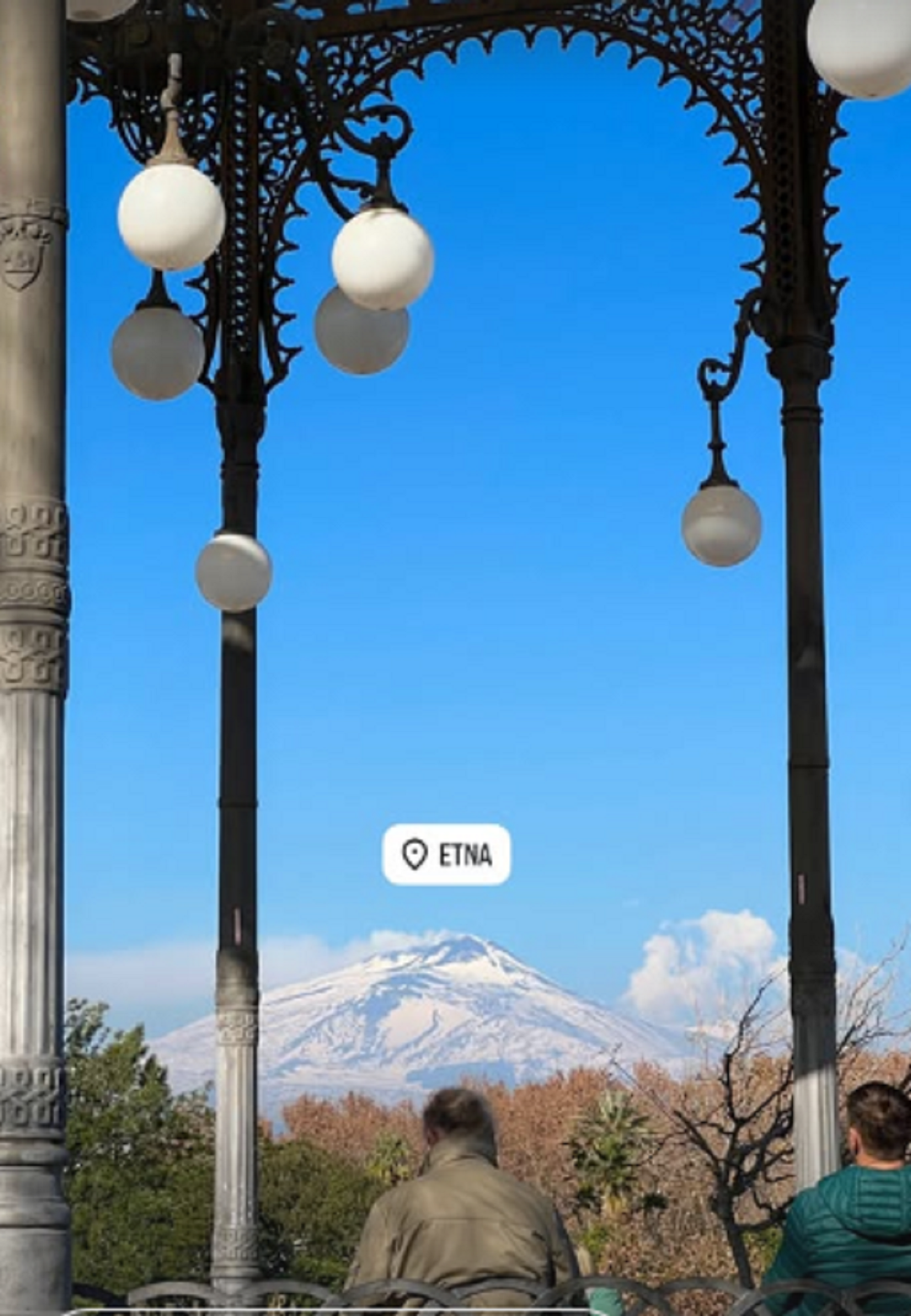 Anche la compagna del cantante pare essere stata bene a Catania: la giovane ha postato, sempre su Instagram, una bella foto dell'Etna innevato ripreso dal Giardino Bellini.