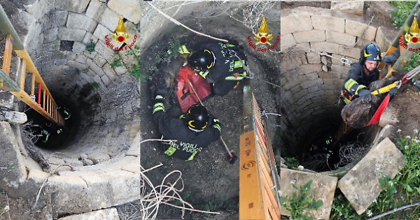 I Vigili del Fuoco del Comando Provinciale di Catania sono intervenuti in Contrada Ingolterra, a Palagonia, per il salvataggio di un cane di grossa taglia caduto all'interno di un pozzo piuttosto profondo, in una zona impervia. Nel salvataggio è stata impegnata la squadra di Vigili del Fuoco del Distaccamento di Palagonia, con il supporto di personale della Polizia Locale e l'intervento di un medico veterinario dell' ASP 3 di Catania.