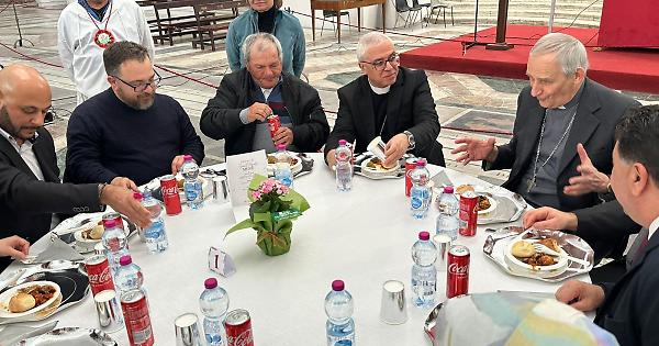 Fuori programma del presidente della Regione Renato Schifani che ha voluto essere presente al pranzo. Schifani, in mattinata, aveva partecipato al solenne pontificale celebrato in cattedrale dal cardinale Matteo Maria Zuppi, presidente della Conferenza episcopale italiana.