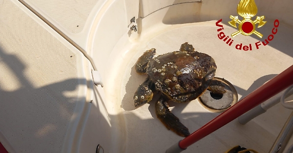 I Sommozzatori dei Vigili del Fuoco del Comando Provinciale di Catania, nella giornata di ieri, durante una fase addestrativa, hanno recuperato una tartaruga marina nello specchio d'acqua antistante "La Tavernetta" del Lungomare di Catania. I Sommozzatori si sono accorti che l'animale era visibilmente in difficoltà poiché intrappolata all'interno di una chiazza di rifiuti galleggianti.