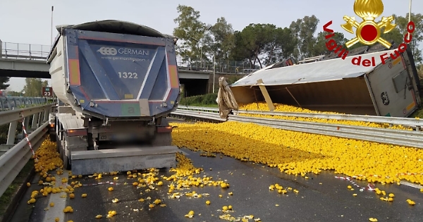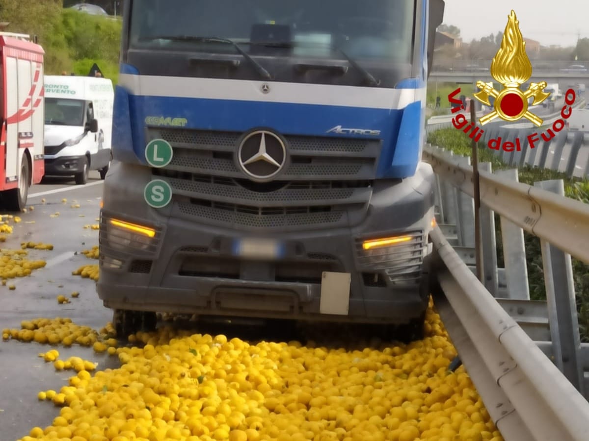 Un tir carico di arance si è ribaltato su un fianco sulla bretella di immissione dell'autostrada A18, nei pressi dello svincolo di Acireale, disperdendo il carico lungo la strada. Sul posto sono intervenuti i Vigili del Fuoco dei Distaccamento di Riposto ed Acireale del Comando Provinciale di Catania. Le cause dell'incidente sono da accertare.