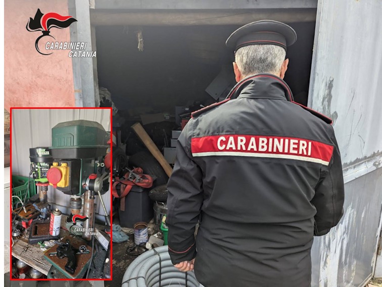 Un’officina per modificare armi, munizioni, oggetti rubati e materiale per essiccare la marijuana sono stati scoperti dai carabinieri in una casa della frazione Pennisi di Acireale (Catania) di proprietà di un 33enne, che è stato arrestato per i reati di detenzione illegale di armi clandestine e alterazione di armi e per detenzione illegale di munizioni da guerra e di sostanze stupefacenti ai fini di spaccio e denunciato per ricettazione. I militari sono arrivati alla casa indagando su alcuni furti nella zona. Nell’officina i militari dell’Arma hanno trovato alcune pistole a pallini modificate per poter sparare veri proiettili e sequestrato 153 proiettili calibro 9, 91 munizioni da guerra,156 proiettili pronti e altri 132 vuoti, una busta con 4 chili di polvere da sparo e cinque scatole di inneschi, due fucili completi smontati, parti di fucile ed una baionetta. I militari hanno anche sequestrato circa 40 grammi di infiorescenze.