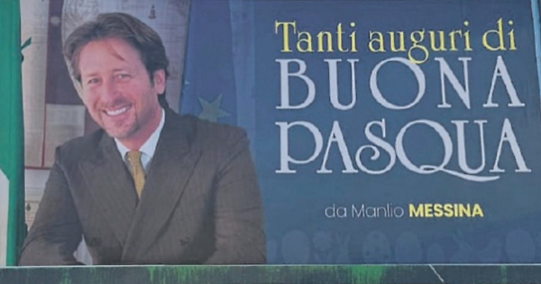 Per la politica, l’equivalente del messaggio d’auguri inoltrato a tutta la rubrica di WhatsApp è il manifesto. In strada, dov’è ben visibile, nei luoghi dove l’elettorato può apprezzarlo. Deve avere pensato a questo il deputato nazionale di Fratelli d’Italia Manlio Messina, con i suoi «Tanti auguri di buona Pasqua» formato extralarge sui cartelloni (digitali e non) a Catania. Stessa riflessione del vicepresidente della partecipata comunale Catania rete gas Massimo Tempio che, in tandem con la moglie Valentina Milici, consigliera del II municipio, sui vecchi cartelloni di banale carta augurano «una santa e serena Pasqua», comprensiva di numero di cellulare per ogni evenienza. Nessun logo per Tempio e Milici, solo quello di FdI (almeno nei manifesti digitali) per Messina.