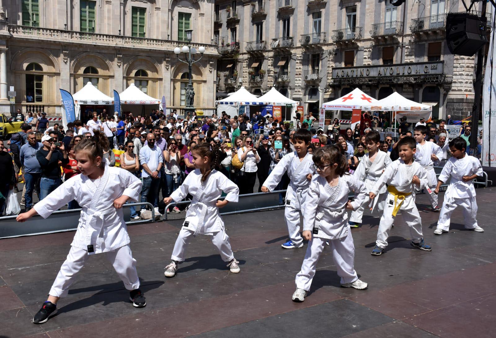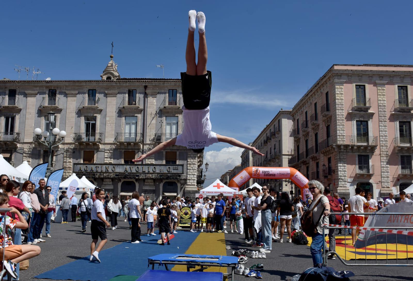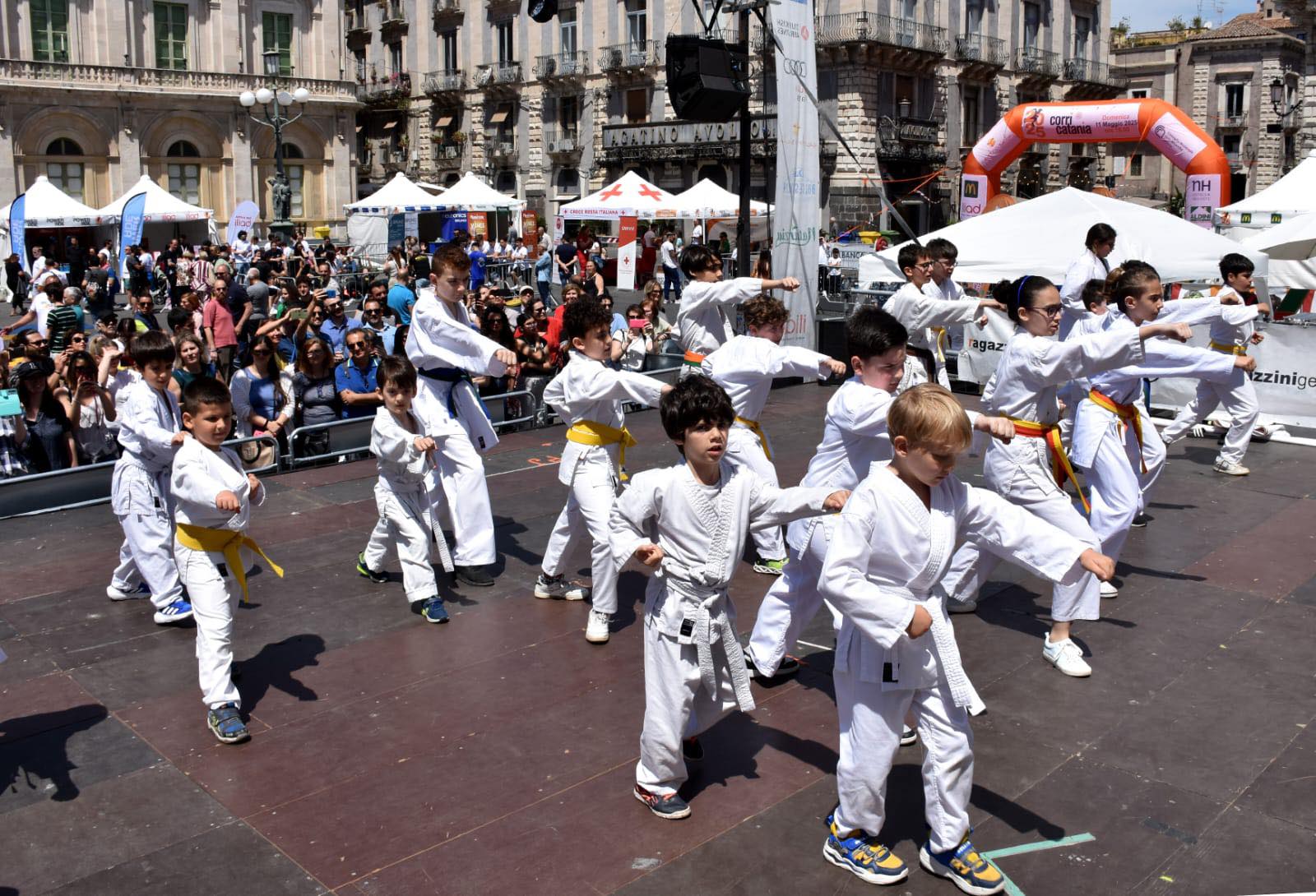 IL CORRI CATANIA VILLAGE. Intanto ha riscosso un grande successo il Corri Catania Village che si è chiuso stasera con tanto sport, musica, animazione, fitness, spettacolo e tanto divertimento. Dalla finale della Street Soccer Cup alle esibizioni di pallamano a cura della Federpallamano Sicilia; lo spazio dedicato alla premiazione del Concorso “Colori e Parole” che ha visto salire sul palco le scuole vincitrici con l’intrattenimento del Mago Dimis e di Superman; le esibizioni di danza, canto; Corri Catania “Talk Show” fino a “A Moda Nostra”, l’esibizione dei giovani talenti e il Premio “Corri Catania” dedicato alle eccellenze del territorio per chiudere oggi nella giornata dello sport con Piazza Università che è diventata una palestra a cielo aperto con aree sportive dedicate alla ginnastica a cura della Palestra Verginelle; a judo, lotta, karate a cura della Fijlkam; al sollevamento pesi con la Federpesi; alla boxe con Catania Boxing Team e al badminton con lo Csain. Spazio anche alla danza in carrozzina e a tante attività a cura di Altair Club che ha animato il palco per tutto il giorno e in chiusura lo swing con la performance di Danz Swing Officina.