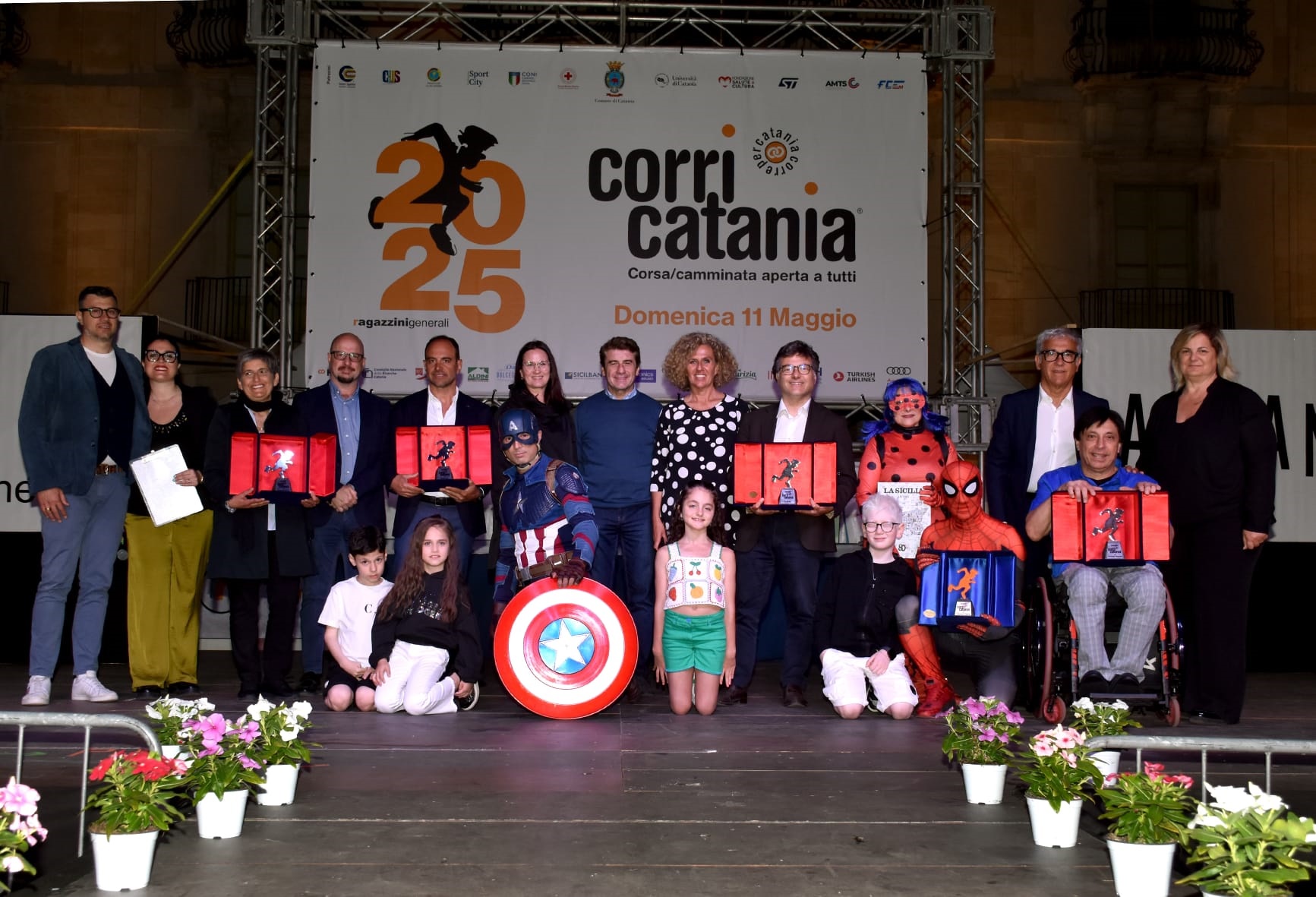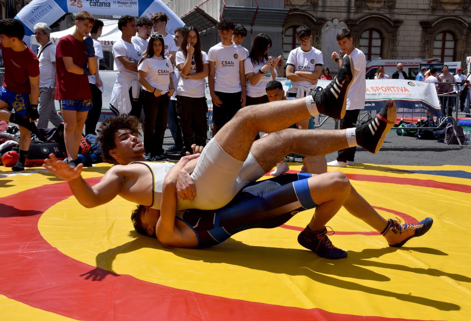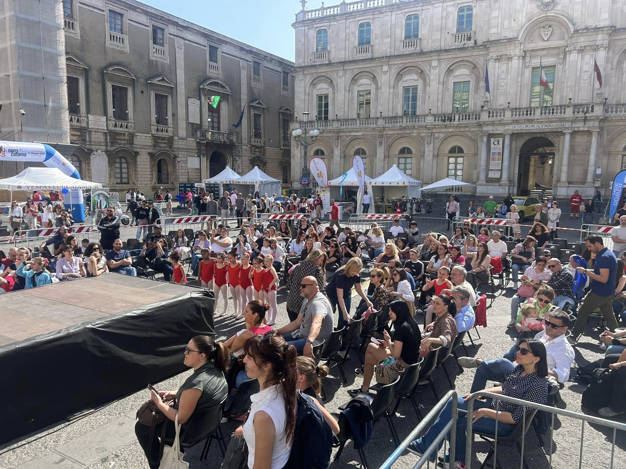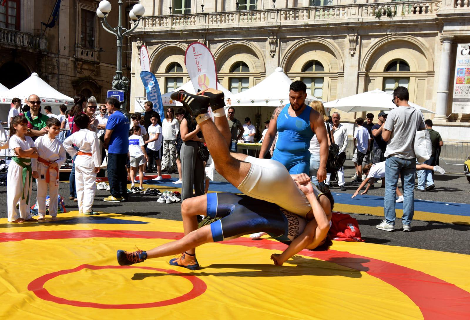 IL CORRI CATANIA VILLAGE. Intanto ha riscosso un grande successo il Corri Catania Village che si è chiuso stasera con tanto sport, musica, animazione, fitness, spettacolo e tanto divertimento. Dalla finale della Street Soccer Cup alle esibizioni di pallamano a cura della Federpallamano Sicilia; lo spazio dedicato alla premiazione del Concorso “Colori e Parole” che ha visto salire sul palco le scuole vincitrici con l’intrattenimento del Mago Dimis e di Superman; le esibizioni di danza, canto; Corri Catania “Talk Show” fino a “A Moda Nostra”, l’esibizione dei giovani talenti e il Premio “Corri Catania” dedicato alle eccellenze del territorio per chiudere oggi nella giornata dello sport con Piazza Università che è diventata una palestra a cielo aperto con aree sportive dedicate alla ginnastica a cura della Palestra Verginelle; a judo, lotta, karate a cura della Fijlkam; al sollevamento pesi con la Federpesi; alla boxe con Catania Boxing Team e al badminton con lo Csain. Spazio anche alla danza in carrozzina e a tante attività a cura di Altair Club che ha animato il palco per tutto il giorno e in chiusura lo swing con la performance di Danz Swing Officina.