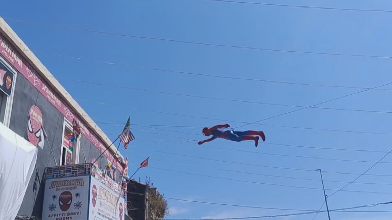 Ha trasformato un immobile in una struttura ricettiva abusiva interamente legata al tema di un supereroe dei cartoni animati, nel quartiere Zia Lisa. Non solo, all’esterno, ha omaggiato il suo beniamino con delle installazioni, anch’esse abusive, tra cui una sospesa in aria con dei cavi in acciaio, collocata senza alcuna autorizzazione, determinando un serio e concreto pericolo per la circolazione stradale e per i passanti.