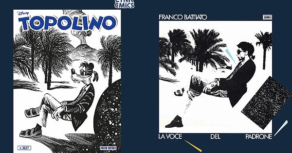 Topolino Magazine, la storica rivista di fumetti con i personaggi Disney edita da Panini Comics, ha riservato una sorpresa per i suoi lettori catanesi: una cover speciale dedicata a Franco Battiato. La copertina richiama quella dell'album "La Voce del Padrone" del 1981, forse il più noto (e certamente il più venduto) della discografia del cantautore etneo, e vede protagonista Pippo.