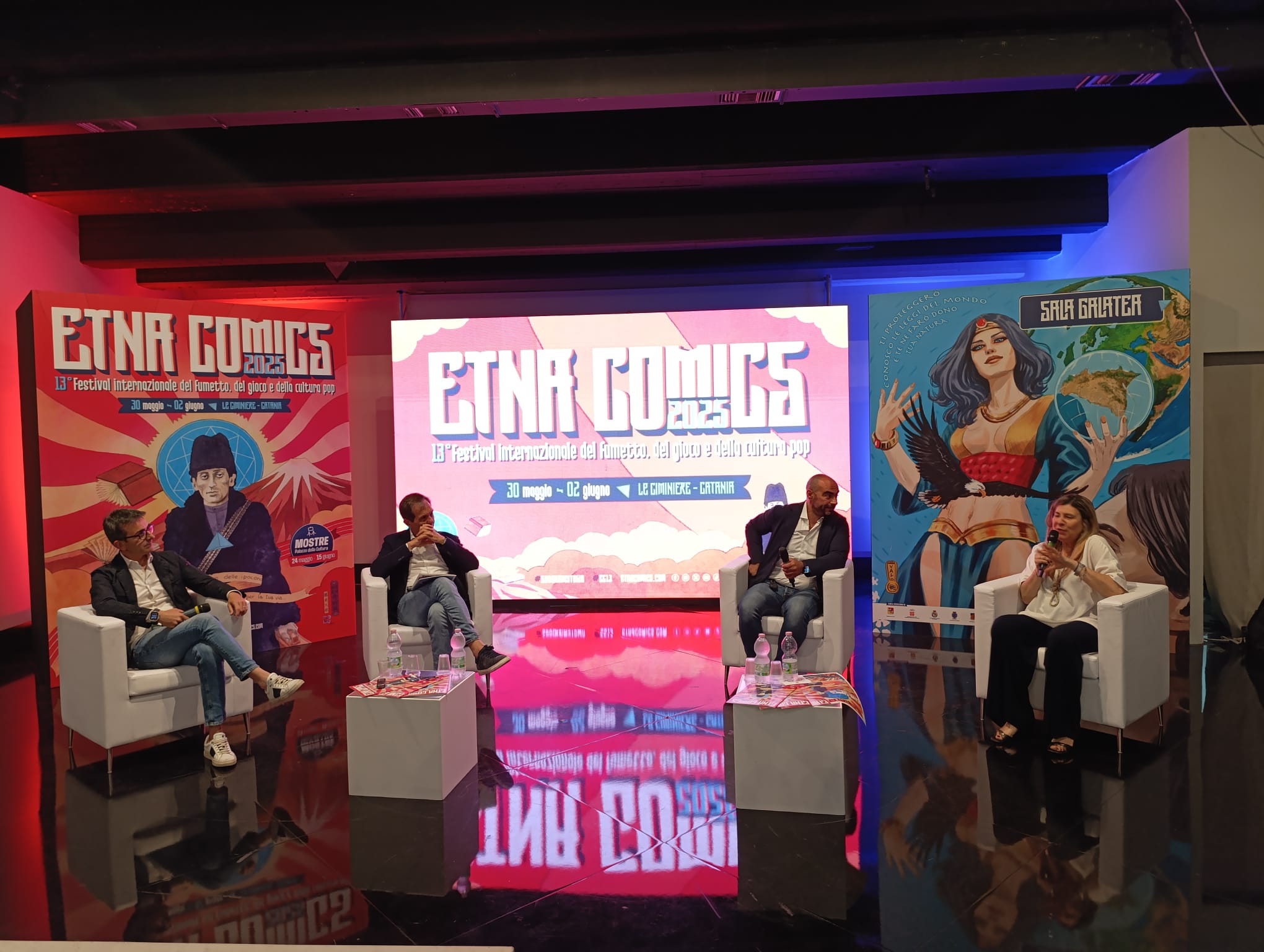 Al via la tredicesima edizione di Etna Comics. Stamattina, presso le Ciminiere di Catania, è stato presentato l’appuntamento che dal 30 maggio al 2 giugno, renderà il capoluogo etneo cuore pulsante per tutti gli amanti del fumetto, del gioco e della cultura pop. Conferenze, mostre, panel, workshop, concerti, proiezioni e anteprime dislocate in tre punti diversi della città: piazza Giovanni XXIII con la Zona 1 (l’Asian Wave), la Zona 2 nel centro fieristico “Le Ciminiere” e nelle tendostrutture del piazzale Rocco Chinnici e infine la Zona 3 con le mostre e un’area gioco all’interno del Palazzo della Cultura. Per celebrare degnamente questo importante evento il nostro giornale uscirà in tutte le edicole, il prossimo 30 maggio, con una prima pagina speciale dedicata proprio all’Etnea Comics 2025.