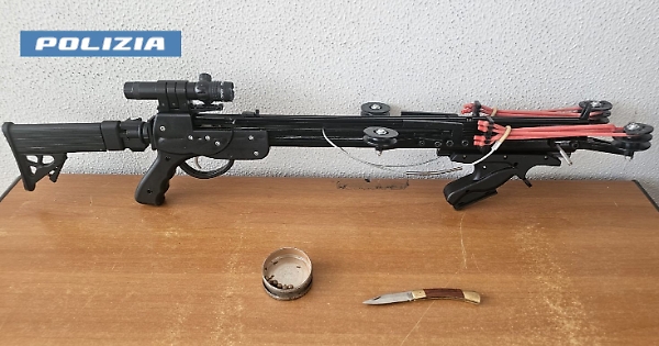 L’attenzione dei poliziotti della squadra volanti è stata richiamata dall’atteggiamento tenuto dal 43enne, individuato mentre stava attraversando via Sturiale. In una mano teneva saldamente una busta con sopra una coperta, come a voler nascondere un grosso oggetto. L’uomo è stato fermato dai poliziotti per essere controllato. Non appena gli agenti della Questura di Catania si sono avvicinati, ha cominciato ad agitarsi e a manifestare una certa insofferenza, motivata, evidentemente, dal contenuto della busta. Infatti, all’interno del sacchetto i poliziotti hanno trovato una grande balestra, con le relative cartucce di ricarica. Inoltre, l’uomo aveva con sé un coltellino dalla lama di sei centimetri, nascosto nella tasca dei pantaloni.