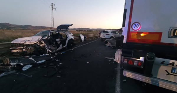 Uno scenario apocalittico quello presentatosi nel pomeriggio di ieri agli occhi dei soccorritori al Km 24+600 della Ss 417 Catania-Gela. Più che un incidente sembrava la scena di una strage. Il bilancio è pesantissimo: due morti, 6 feriti e una coppia di Mirabella Imbaccari rimasta miracolosamente illesa.