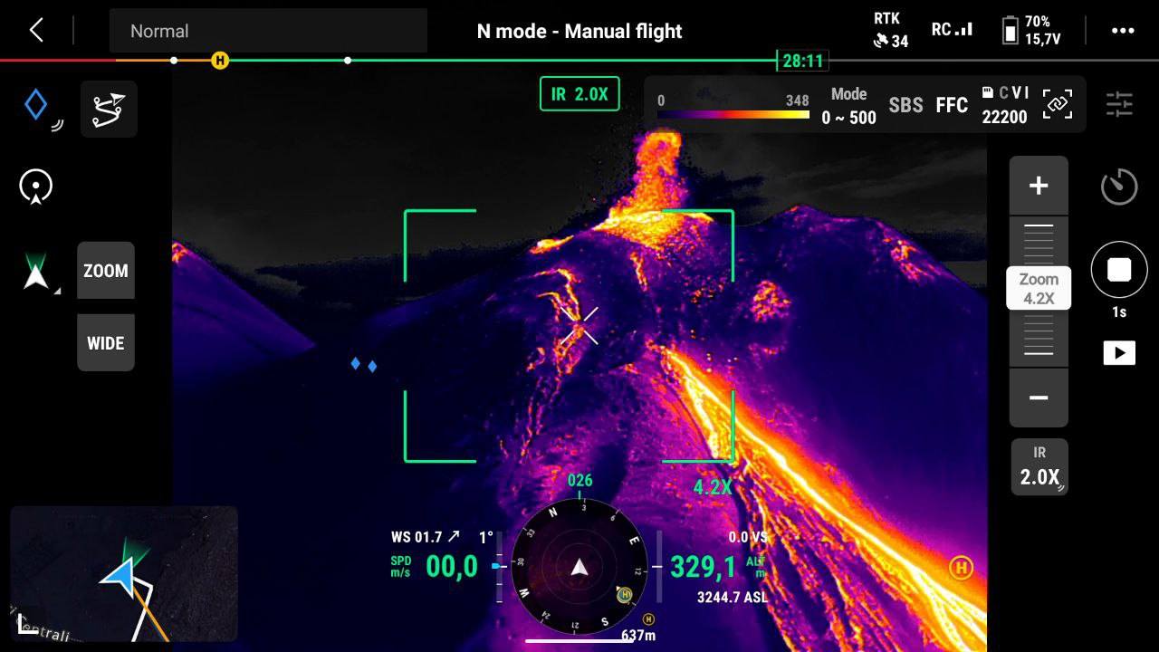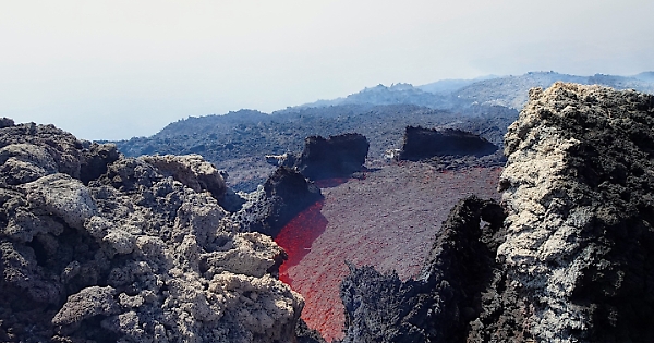 Persiste sull'Etna l’attività effusiva dalla bocca di quota 2.980 metri che alimenta un campo lavico con almeno tre flussi principali che, in area distale, si dividono anch’essi in ulteriori flussi lavici, il cui fronte più avanzato si attestava a mezzogiorno a quota di circa 2.350 metri, poco a monte delle bocche del 1610 e di monte Pecoraro. Inoltre, dai rilievi effettuati dall’Ingv, si osserva che il campo lavico prodotto dalla bocca effusiva di quota 3.100 metri non è attivo ed è in raffreddamento. Quello relativo alla bocca posta a 3.200 metri è ancora alimentato, con il fronte più avanzato, che si sviluppa in direzione Sud-est, che a mezzogiorno si attestava alla quota di circa 2.870 metri.