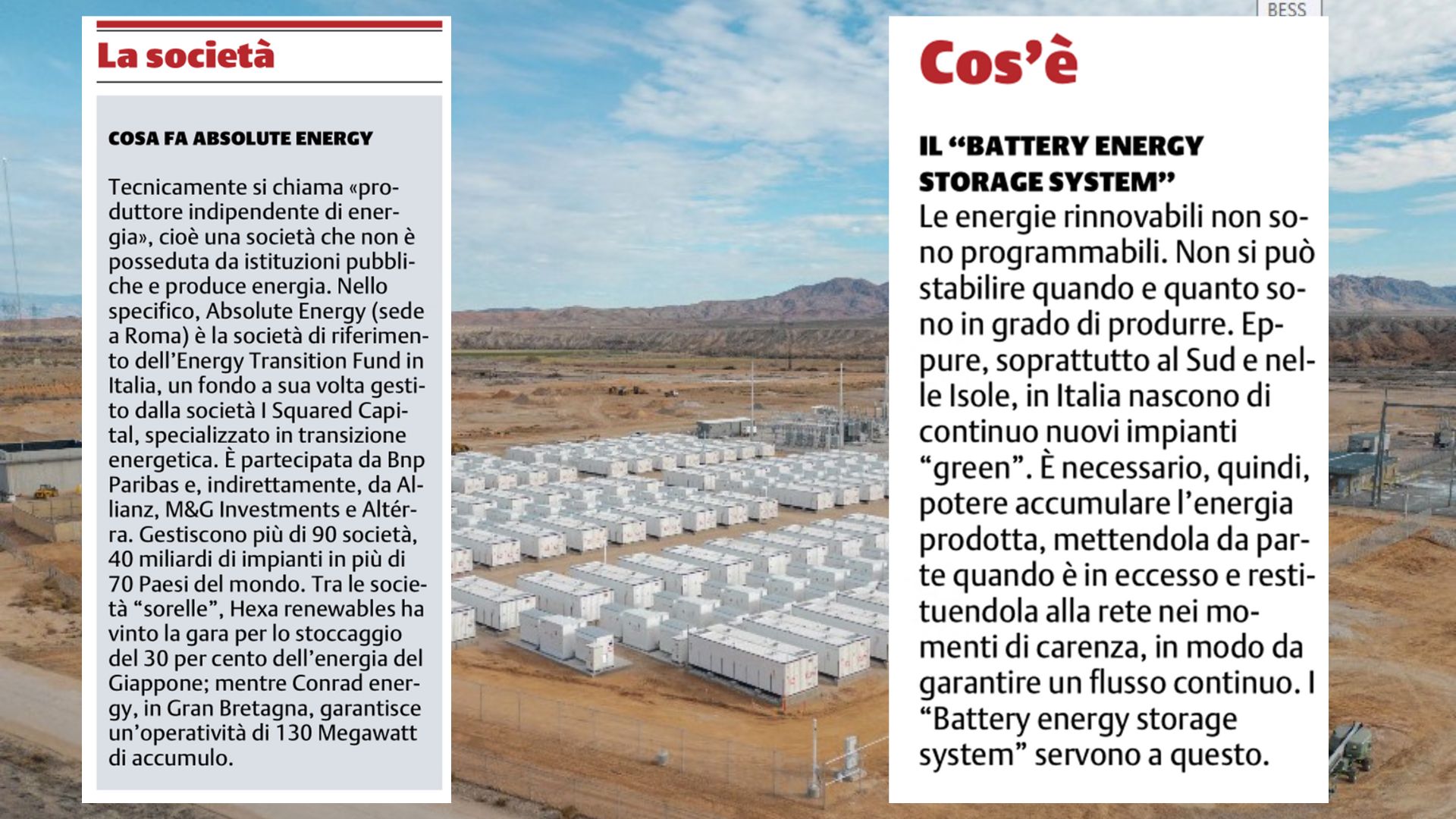 Absolute Energy è gestita dal fondo di investimento I Squared Capital, che conta più di 90 società partecipate in tutto il mondo e un portafoglio di 40 miliardi di asset. E adesso la Sicilia è al centro delle attenzioni di tutti, per via della prima attesissima asta Macse, bandita da Terna e fissata per il 30 settembre.