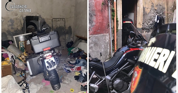 Catania - Il proprietario di una moto BMW di grossa cilindrata stava ancora sporgendo denuncia ai carabinieri per il furto del mezzo, avvenuto poco prima in via Fiorentino, quando una pattuglia in moto del Nucleo Radiomobile del Comando Provinciale di Catania, sentita la nota di ricerca diramata dalla Centrale Operativa, si è immediatamente recata nella zona del furto. Dopo diversi giri eseguiti nelle vie limitrofe, i militari, percorrendo la via Petriera, si sono accorti che, dinanzi una abitazione in stato di abbandono posta al piano terra, era stata creata ad arte una sorta di rampa per facilitare l’ingresso nell’immobile, dei mezzi a due ruote. E’ bastato accedervi per scoprire che lo stesso era stato adibito a deposito per motocicli rubati. Difatti, oltre alla BMW rubata poco prima in via Fiorentino, i militari hanno rinvenuto uno scooter Honda SH 300, rubato nei giorni scorsi in via Ammiraglio Caracciolo, nonchè diversi accessori da moto (bauletti, specchietti e pneumatici). I mezzi sono stati restituiti ai legittimi proprietari.