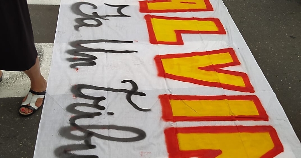 I manifestanti hanno anche srotolato un lungo striscione sulla strada con la scritta «La giustizia non la fa un tribunale».