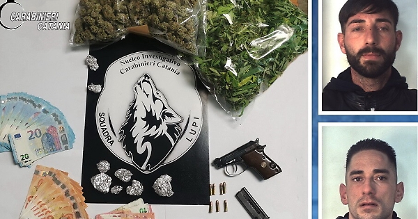 Tremestieri Etneo (Catania) - I Carabinieri della “Squadra Lupi” del Nucleo Investigativo del Comando Provinciale hanno arrestato nella flagranza il 31enne Claudio Cristaudo e il 36enne Salvo Federico Di Salvo, entrambi di Tremestieri Etneo, poiché ritenuti responsabili di detenzione di arma clandestina, detenzione illegale di munizioni, coltivazione e detenzione finalizzata allo spaccio di sostanze stupefacenti, nonché ricettazione. L’attività investigativa svolta dai militari, opportunamente supportata da servizi di pedinamento ed osservazione, ha consentito di far luce sulle modalità utilizzate dal duo per porre in essere l’attività illegale. Questi utilizzavano come centro di spaccio l’abitazione del Cristaudo il quale, avvalendosi della piena collaborazione del Di Salvo, avente compiti di vedetta e selezione della clientela –, si serviva di uno scooter per raggiungere gli acquirenti che si avvicendavano sulle loro auto per evitare che tra di essi si potessero celare appartenenti alle forze dell’ordine – accoglieva dinanzi casa il cliente ne riceveva l’ordinazione, per poi rientrare nell’immobile, prelevare quanto richiesto e ripresentarsi per effettuare lo scambio droga–denaro.