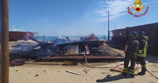 CATANIA - Questa mattina, la squadra dei Vigili del Fuoco del Distaccamento Sud del Comando Provinciale di Catania, è intervenuta per l'incendio della fila centrale delle cabine in legno all'interno del lido "Las Vegas", in via Pagaro, zona Vaccarizzo a Catania.