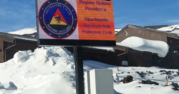 PALERMO - Le escursioni sull'Etna potranno essere effettuate in condizioni di maggiore sicurezza. La Protezione civile della presidenza della Regione siciliana ha completato, in questi giorni, la collocazione di pannelli luminosi a messaggio variabile che forniranno notizie, in tempo reale, sulle condizioni del vulcano: verranno riportati gli avvisi, le disposizioni e le ordinanze emanate dalle autorità in ordine alle modalità di fruizione delle aree più a rischio. I visitatori e gli escursionisti potranno trovare, sulle vie di accesso alle alte quote, informazioni dettagliate relativamente all’area vulcanicà indicazioni di protezione civile dati utili sul territorio di riferimento e tutte le comunicazioni necessarie per effettuare le loro escursioni in condizioni di sicurezza.