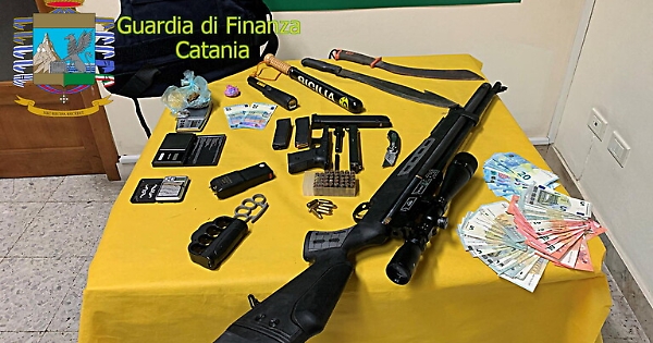 CATANIA - Salvatore Raciti, 36 anni, socio dello stabilimento balneare Le Capannine del lungomare Plaia, è stato arrestato da militari della guardia di finanza del comando provinciale di Catania per detenzione illegale di armi e munizioni e per spaccio di stupefacenti e falsificazione monetaria. In alcuni bungalow del lido in suo uso fiamme gialle del nucleo di Polizia economico finanziaria hanno trovato: una carabina calibro 5,5 mm modificata, una pistola con matricola parzialmente abrasa e completa di caricatore contenente 10 cartucce 9x21, altre 37 cartucce, due caricatori vuoti, 11 bossoli, un coltello a scatto, un giubbotto antiproiettile, due machete, uno sfollagente in legno, due taser, un metal detector e un tirapugni. Sequestrati anche diversi bilancini e modiche quantità di marijuana e hashish, 3.000 euro in contanti e due banconote false. La Procura di Catania ha disposto il trasferimento di Raciti in carcere.