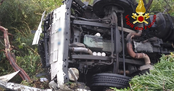 Autocisterna carica di ossigeno si ribalta sulla A18: ferito l'autista
