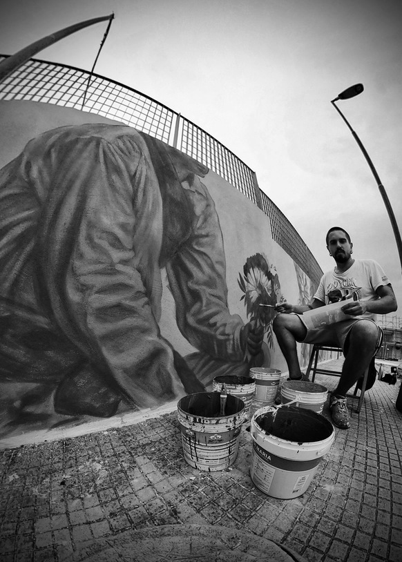 Collocata sul muro di recinzione della Piscina comunale di Melilli, all’ingresso del paese, l’opera rappresenta una processione di corpi, frammenti di vita ed emozioni che sembrano cercare una strada, la loro strada.