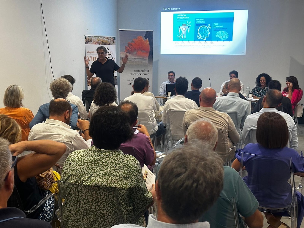 Le opportunità di crescita ma anche i dubbi e i rischi legati allo sviluppo e alla sempre più crescente diffusione dell’Intelligenza Artificiale sono stati al centro del convegno ‘Turismo ed Intelligenza Artificiale. Tradizione e futuro per migliorare l’esperienza dei visitatori”, organizzato dalla Strada del Vino e dei Sapori dell’Etna, nell’ambito della 44ª edizione della ViniMilo. Ad illustrare ad una variegata platea di produttori vitivinicoli, imprenditori e curiosi le potenzialità di quella che è ormai una delle più grandi sfide tecnologiche del momento sono stati Giovanni Giuffrida, CEO di Neodata, Luciano De Franco, CEO di Paradigma, e Simone Di Stefano, Innovation Manager.