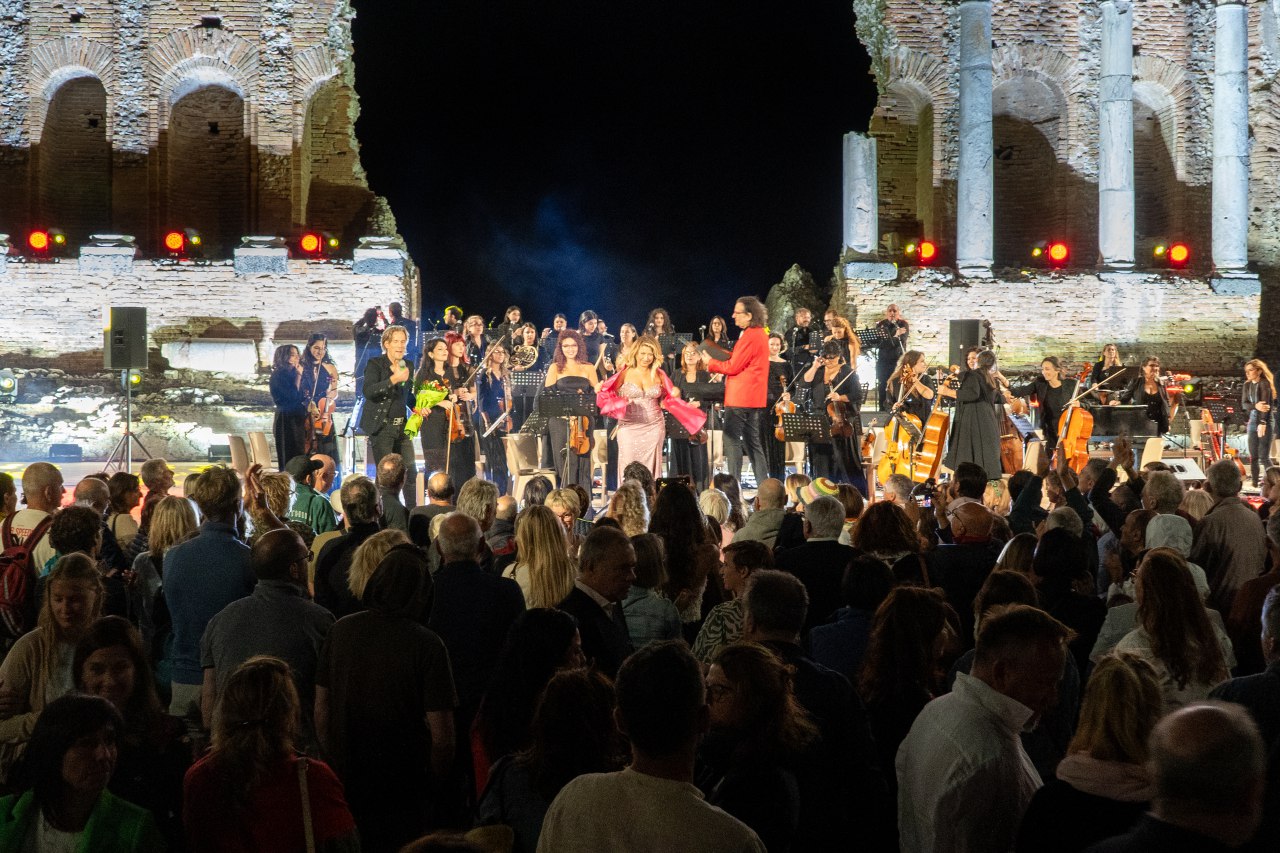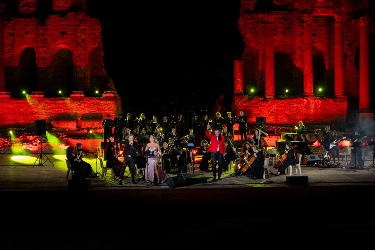 La straordinaria voce del soprano di fama internazionale Desirée Rancatore insieme a quella potente del rocker svedese Magnus, è stato connubio perfetto per incantare il pubblico dello spettacolo Queen Barcelona Opera Rock, ieri sera, venerdì 13 settembre 2024, al Teatro Antico di Taormina. Il concerto- pensato per celebrare l’album capolavoro "Barcelona" realizzato da Freddie Mercury e Montserrat Caballé, ed orchestrato in chiave sinfonica dal grande Maestro Roberto Molinelli- ha riscontrato la partecipazione attiva ed energica del pubblico, che ha cantato e ballato anche sulle note dei Queen- una parte del concerto è dedicata alle hits della band britannica- eseguite dall'orchestra siciliana tutta al femminile, la Women Orchestra, per l'occasione diretta dallo stesso Molinelli (la Direttrice Alessandra Pipitone, questa volta, si è esibita in veste di pianista).