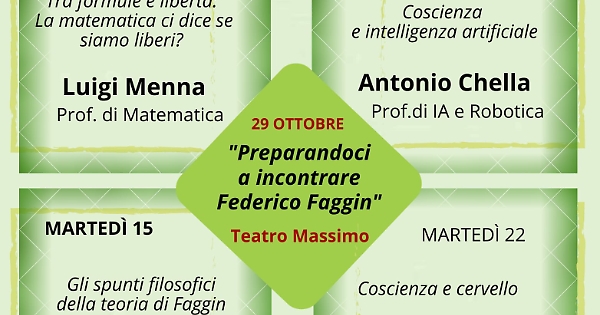 Nell’attesa dell’arrivo a Palermo di Faggin, piazzetta Bagnasco si prepara con 4 incontri con un matematico, un professore di robotica, un professore di filosofia e una neurochirurga. Il via, il 4 ottobre con Luigi Menna