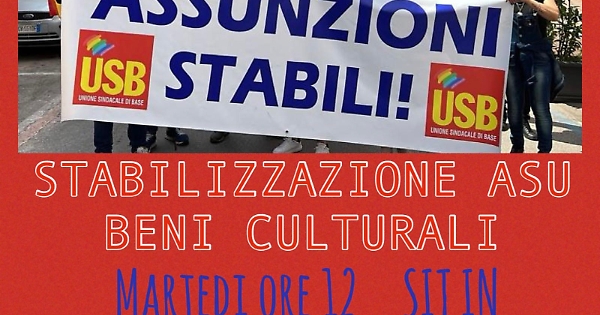 In seguito ai continui solleciti trasmessi alla Presidenza , nulla ad oggi è pervenuto in maniera ufficiale, circa le procedure che si intendono adottare nei confronti dei lavoratori ASU impegnati presso i Beni Culturali; e nessun confronto è avvenuto, pertanto sono riprese una serie di iniziative volte a non mettere sotto il tappeto la polvere. Inoltre questa USB PI SICILIA rimane insoddisfatta della risposta data dall’ASSESSORE al ramo , nella Seduta d’Aula n. 135 del 09/10/2024 all’interpellanza parlamentare N.137 - Intendimenti in merito alla stabilizzazione del personale ASU in servizio presso l’Assessorato regionale dei beni Culturali e I.S. in applicazione dell’ art. 10, comma 2 della L.. 16 gennaio 2024 n. 1-.