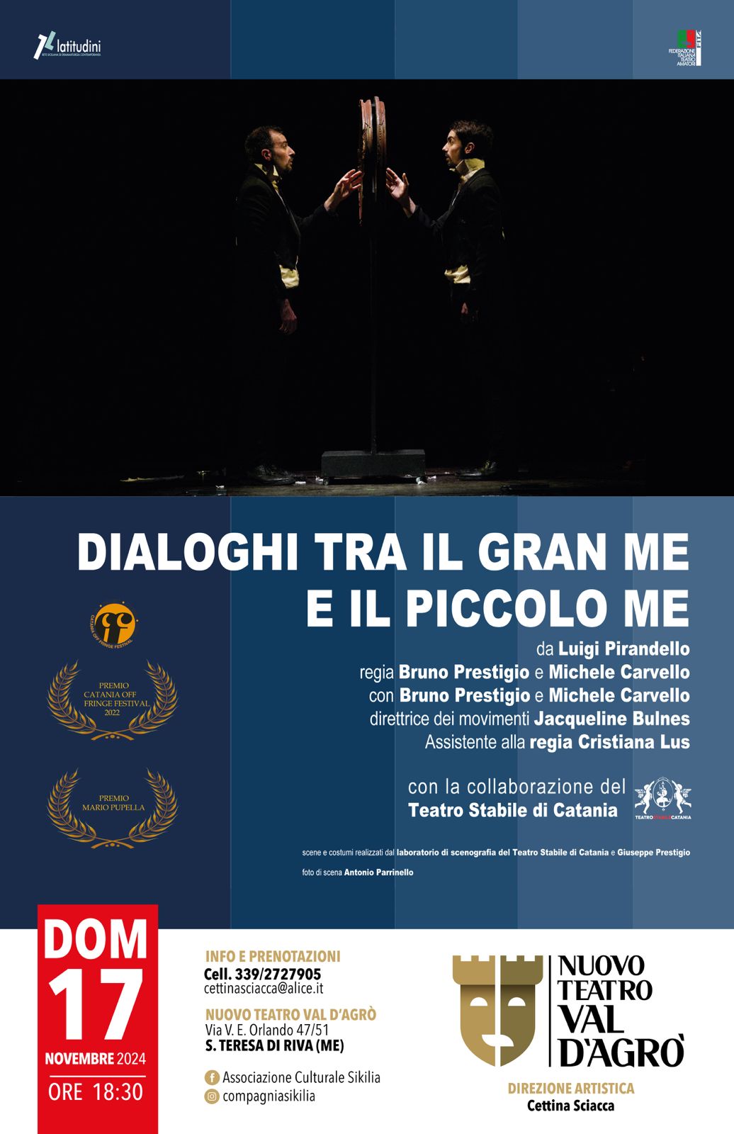 La stagione è curata dalla direttrice artistica Cettina Sciacca. Protagonisti in scena Bruno Prestigio e Michele Carvello, che curano anche la regia di questo spettacolo tratto da alcune novelle di Luigi Pirandello.
